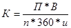где К - количество рабочих мест контролеров-кассиров; П — площадь торгового зала, м2; В — среднее время расчета с одним покупателем; п - площадь торгового зала, приходящаяся на одного покупателя, м2; 3600 — количество секунд в 1 ч; и — коэффициент использования рабочего времени контролером-кассиром.