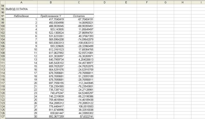 В результате работы инструмента Регрессия были получены результативные таблицы 2.6 – 2.9 Рабочего файла.