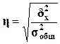 Для анализа тесноты связи между факторным и результативным признаками, рассчитывается показатель η - эмпирическое корреляционное отношение, задаваемое формулой
