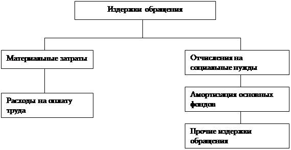 Схема 1 показывает, что по экономическому содержанию издержки обращения объединены в пять основных групп: материальные затраты, расходы на оплату труда, отчисления на социальные нужды, амортизация основных фондов, прочие издержки. Рассмотрим каждую из них подробней.