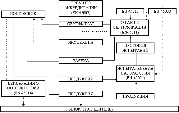 Объединенным институтом СЕН/СЕНЭЛЕК для стран-членов ЕЭС и стран-членов Европейской ассоциации свободной торговли (ЕАСТ) разработаны европейские стандарты EN серии 45000. Это организационно-методические документы, касающиеся деятельности испытательных лабораторий, органов по сертификации продукции, систем качества и аттестации персонала, а также определяющие действия изготовителя, решившего заявить о соответствии своей продукции требованиям стандартов.