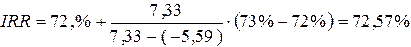Таким образом выбираем наиболее малый промежуток (72%, 73%) и сводим расчеты в таблицу: