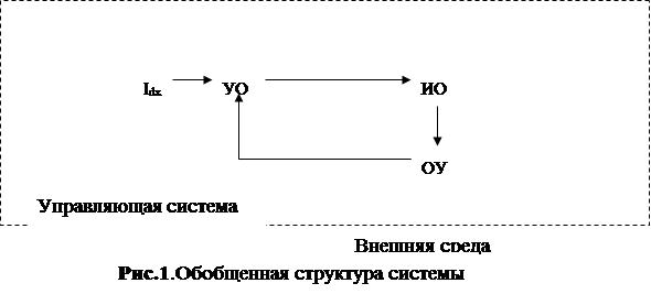 В целом, любая система управления может быть представлена в виде совокупности двух взаимосвязанных подсистем (рис.1). В процессе управления ОУ поступает в управляющий орган ОУ, на входе которого присутствует информация Iвх, определяющая требуемое в соответствии критериям качества функционирования системы положение (состояние) объекта управления. На основе информации о требуемом и реальном состоянии объекта управляющий орган формирует (в соответствии с используемым критерием качества) управляющую информацию Iу и направляет ее на исполнительный орган ИО, который выбирает управляющее воздействие U на объект управления. Линия передачи информации Ioc отображает обратную связь, обеспечивающую передачу информации с выхода системы (объекта управления) на ее вход (на управляющий орган). Понятие обратной связи является одним из фундаментальных понятий в теории управления. Различают отрицательную обратную связь и положительную обратную связь.