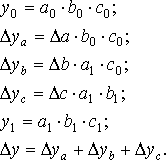 ya, yb, - промежуточные изменения результирующего показателя, связанного с изменением факторов а, b, соответственно.