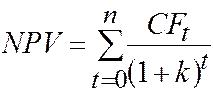 2. Найденные значения суммируются; тем самым находится NPV проекта.