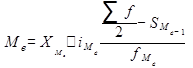 – ниж. граница медианного интервала; iMе – медианный интервал;