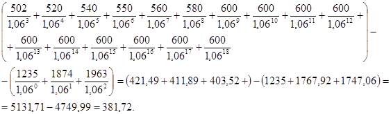 Таким образом, чистый приведенный доход составляет Ч = 381,72.