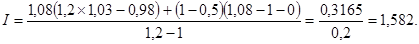 Для ответа на этот вопрос воспользуемся основной формулой индекса прибыли 4.6 для определения компенсационного соотношения между двумя параметрами, имея в виду, что цену реализации понизим на величину ∆d, а индекс прибыли примем I = 1 . Дополнительно примем g = 1 и f = 0. Тогда, после подстановки всех исходных данных в указанную формулу и простейших алгебраических преобразований, получим: