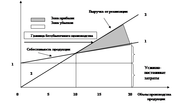 где b1 — объем реализации продукции, при котором наступает граница относительной безубыточности производства.