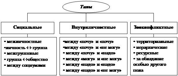 • конфликт социальный — попытка достижения вознаграждения путем подчинения, навязывания своей воли, удаления или даже уничтожения противника, стремящегося достичь того же вознаграждения. От конкуренции конфликт отличается четкой направленностью, наличием инцидентов, жестким ведением борьбы;