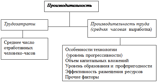 Как видно, производительность связана с количеством (количеством часов, трудозатратами) и качеством труда (особенностями технологии, объемом капитальных вложений, качеством персонала).