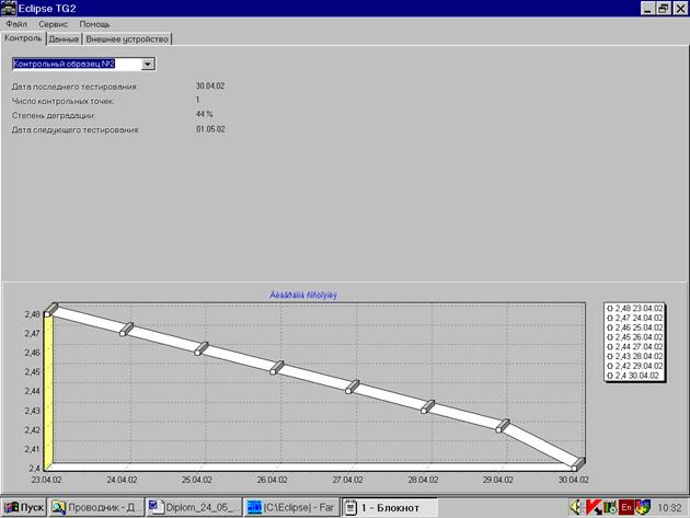 Рис. 5 Программа Eclipse TG2 – окно данных