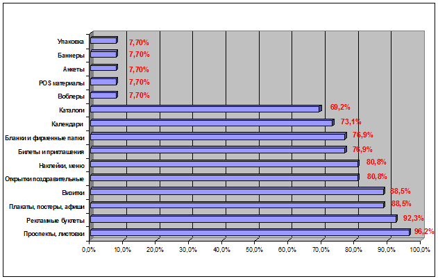 · Наиболее часто заказываемыми видами работ являются: проспекты, листовки, рекламные буклеты, плакаты, афиши и визитки (см. рис. А.2).