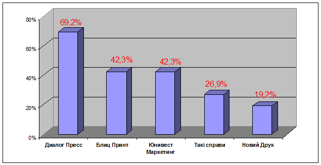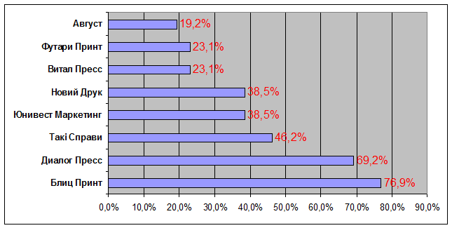 · Компании Такі справи, Новий Друк и многие другие упоминались респондентами значительно реже.