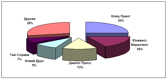 Рис. А.9. Распределение рынка полиграфии г. Киева.