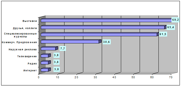 · Основными источниками информации о компаниях, предоставляющих услуги полиграфии, являются выставки, друзья, коллеги, специализированные журналы и каталоги (см. рис. А.10).