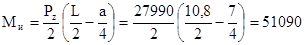 Рассматривая палец как балку со свободно опертыми концами, с равномерно распределённой нагрузкой на длине вкладыша головного подшипника, изгибающий момент относительно опасного сечения I–I будет равен: