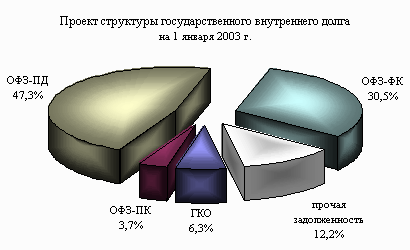 · Проектом федерального закона "О федеральном бюджете на 2002 год" предусмотрены платежи по погашению государственного внешнего долга в размере 6,8 млрд. долларов США и государственного внутреннего долга в размере 141,7 млрд. рублей. [26]
