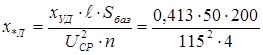 худ- средние значения удельных сопротивлений в зависимости от номинального напряжения и конструкции линии (Ом/км).