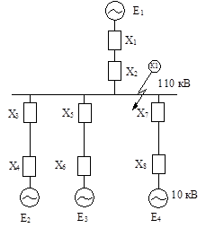 Рис. П.1.2. Эквивалентная схема замещения электрической системы