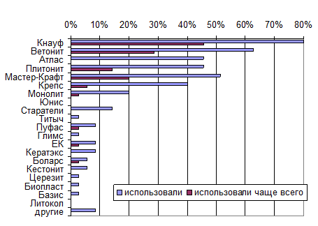 В тот же самый период времени и теми же силами был проделан SWOT-анализ и в отношении трех наиболее популярных на рынке марок сухих строительных смесей: Vetonit (Финляндия), Cerezit (Хенкель, совместное производство Германия-Россия), Атлас (Польша). С целью возможности дальнейшего сравнительного анализа и определения конкурентных преимуществ «Samix Mineral» торговые марки характеризовались относительно тех же самых характеристик внешней и внутренней среды. Итак, мы видим, что по двум наиболее сильным позициям: высокое качество продукции и более низкая цена по сравнению с товарами аналогами (имеются ввиду именно «Vetonit» и «Cerezit»), «Samix Mineral» по совокупному мнению экспертов имеет ощутимые преимущества.
