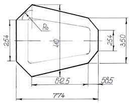 Поскольку развертка детали большая – вырубку будем производить из карточек размером 774 ´ 410 мм (возможна не вырубка, а обсечка).