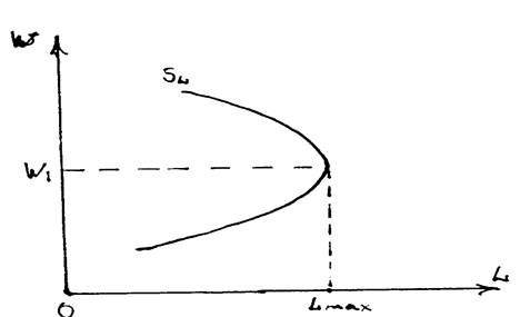 Рис. 7.2 Загибающаяся назад кривая предложения труда.