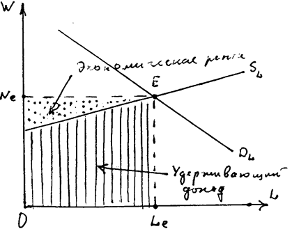 Экономическая рента и удерживающий доход. Общий денежный доход владельца ресурса распадается на две части, - удерживающий доход и экономическую ренту
