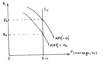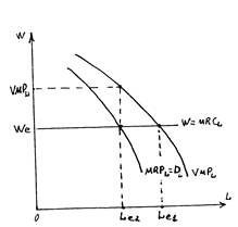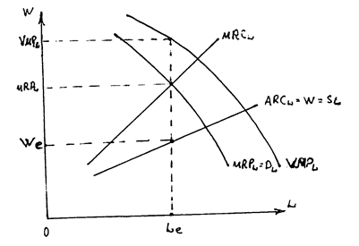 При рассмотрении рынка труда предельная выручка от предельного продукта обозначаются как MRРL. Она определяется как произведение предельного продукта труда (MРL) на предельную выручку от продажи этого продукта (MRQ):