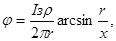 При сложных контурных заземлителях потенциал на поверхности земли или пола помещения на расстоянии х от центра контурного заземлителя определяется из выражения