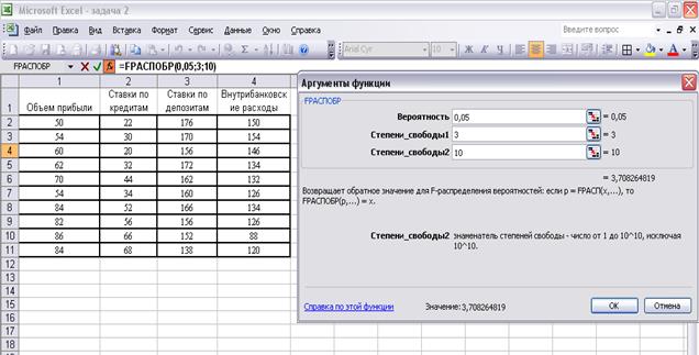 Данный показатель определяется с помощью функции FРАСПОБР: