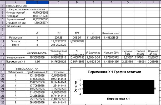 4) Оценим адекватность построенной модели также используя MS Excel. Для нахождения необходимых показателей построим таблицу: