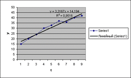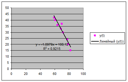 1) Строим линейную модель Y(t) = a0 + a1t, параметры которой оценим с помощью МНК.