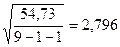 2,5 < 3,37< 3,9, свойство выполняется, гипотеза о нормальном распределении ряда остатков принимается.