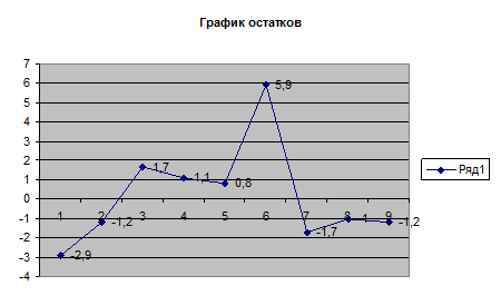 · независимости уровней ряда остатков по d - критерию (в качестве критических используйте уровни d1 = 1.08 и d2 = 1,36) или по первому коэффициенту корреляции, критический уровень которого r(1) = 0,36;