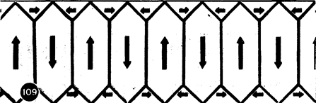 Особую группу составляет небольшой класс веществ — ферромагнетики, названные по их главному представителю — железу. По современной теории кристалл железа состоит из отдельных микроскопических областей (доменов), в каждой из которых спины атомов уже расположены (без участия внешнего поля) в направлении кристаллических осей (вспомните анизотропию кристаллов). В ненамагниченном железе домены ориентированы так, что суммарное магнитное поле их равно нулю (рис. 8).