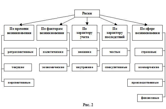 По времени возникновения риски распределяются на ретроспективные, текущие и перспективные. Анализ ретроспективных рисков, их характера и способов снижения дает возможность более точно прогнозировать текущие и перспективные риски.