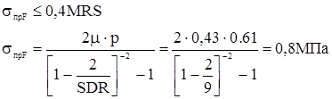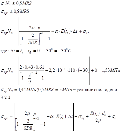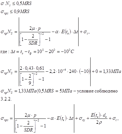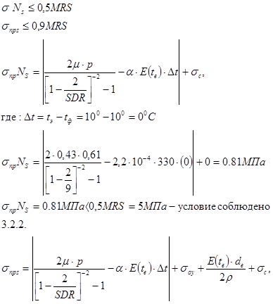 Расчёты показали что выбранная труба ПЭ 100 SDR9 с номинальным наружным диаметром 225 мм и толщиной стенки 25,2 мм по ТУ 2248-048-00203536-2000 удовлетворяет требованиям СНиП, и нормативных расчётов.