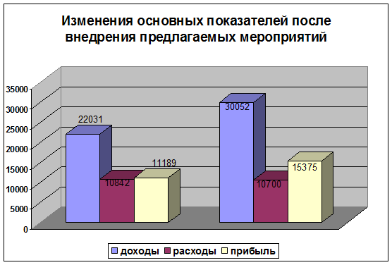 Рис.2.4.Изменение основных показателей от внедрения новых путей повышения доходности в 2000 году