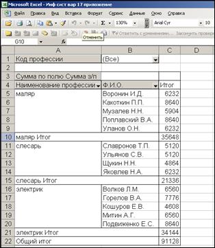 Сумма заработной платы по профессии |
