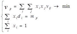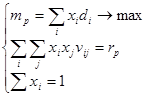 Пусть xi – доля капитала, потраченная на покупку ценных бумаг i-го вида. Весь выделенный капитал принимается за единицу. Пусть di- доходность в процентах годовых бумаг i-го вида в расчете на одну денежную единицу.