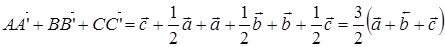 соответственно А’, B’, C’. Выразим векторы, представляющие медианы