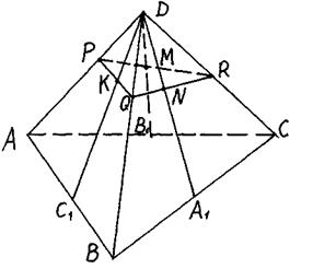 Пусть плоскость KMN пересекает ребра DA, DB и DC тетраэдра ABCD в точках Р, Q, R соответственно.