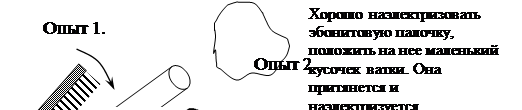 машина, теннисный шарик, стакан, расческа, бумажные человечки, провода соединительные, эбонитовая палочка.