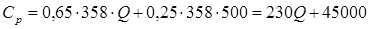 Для продукции приборостроительных предприятих можно принять, что в составе сбестоимости продукции условно-переменные расходы составляют 65-75%, а условно-постоянные – 25-35%. Тогда при годовой мощности производства Х штук себестоимость годового выпуска продукции Ср составляет