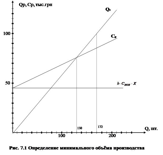 Потенциальные потребители и возможные объёмы производства определяются в разделе “Анализ рынка”. Но экономические показатели определяют минимальный объем производства, из-за которого выпуск продукции будет целесообразным. Это зависит от отношения условно-переменных, условно-постоянных расходов в составе себестоимости продукции и договорной цены.