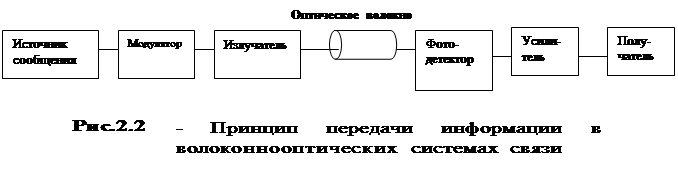 В наиболее общем виде принцип передачи информации в волоконно-оптических системах связи изображен на рис.2.2.