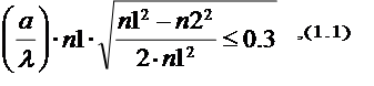 Если неравенство (1.1) не удовлетворено, то в световоде устанавливается многомодовый режим. Очевидно, что тип модового режима зависит от характеристик световода (а именно радиуса сердцевины и величины показателей преломления) и длины волны передаваемого света.
