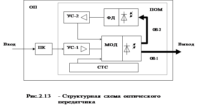 Структурная схема оптического передатчика прямой модуляции приведенная на рис.2.13, является оптимальной, т.к. наиболее рационально реализует все функциональные возможности и достоинства выбранного вида модуляции.