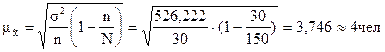 Вывод. С вероятностью 0,683 можно утверждать, что в генеральной совокупности предприятий из отраслей экономики доля предприятий со среднесписочной численностью работников 1800 человек и более будет находиться в пределах от 28,8% до 44,6%.